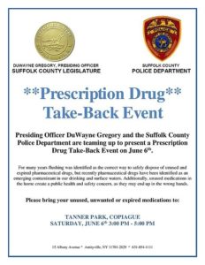 A flyer highlighting drug take-back program sponsored by Suffolk County in June 2015. Source: Suffolk County