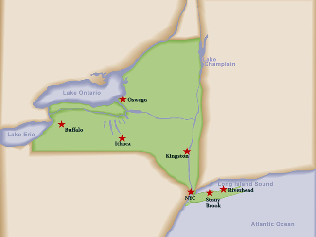 The program includes administrative offices at Stony Brook University’s School of Marine and Atmospheric Sciences, extension administration in Ithaca and extension staff in Riverhead, Stony Brook, Kingston, Oswego and Buffalo.