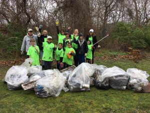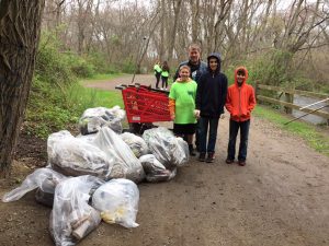 80 volunteers worked in eight groups of ten to remove trash from in and around Carl’s River, from North Babylon to where the river enters the bay.