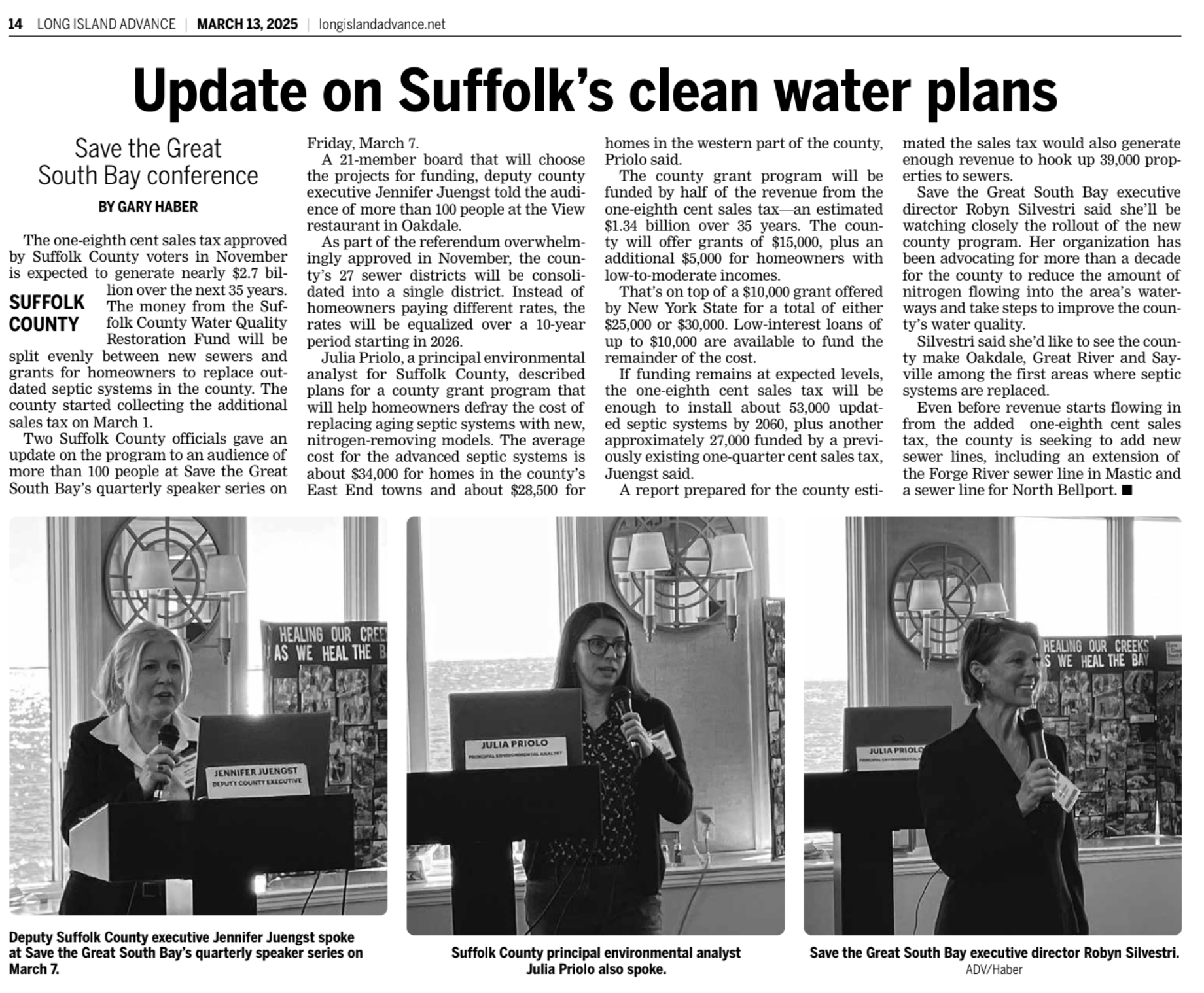 Speaker Series – Update on Suffolk’s clean water plans, Long Island Advance 3/13/25