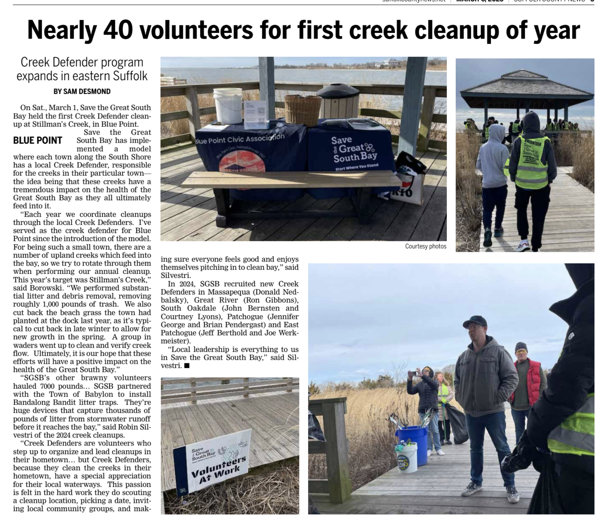 Blue Point Creek Defender Clean Up, Suffolk County News 3/6/25