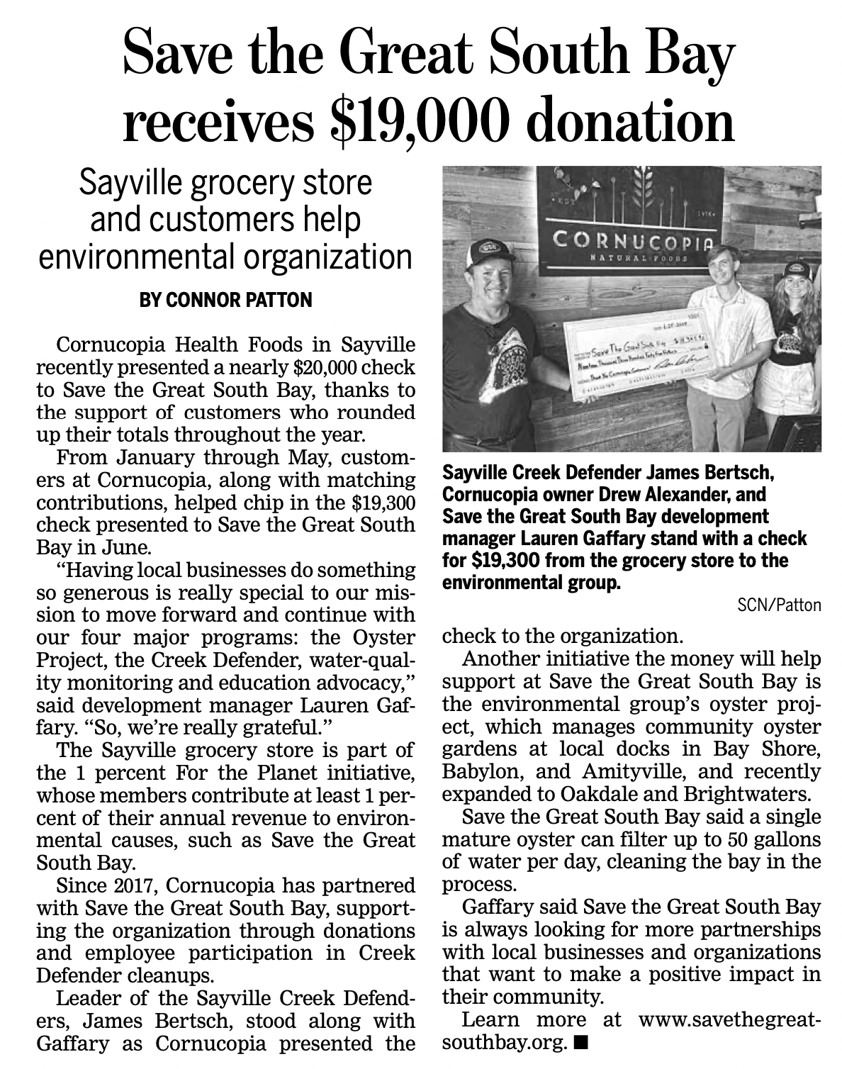 Save The Great South Bay Receives $19,000 Donation from Cornucopia, Suffolk County News, 7/8/25